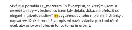 "Skvěle si poradila i s „mezerami“ v životopisu, se kterými jsem si nevěděla rady."